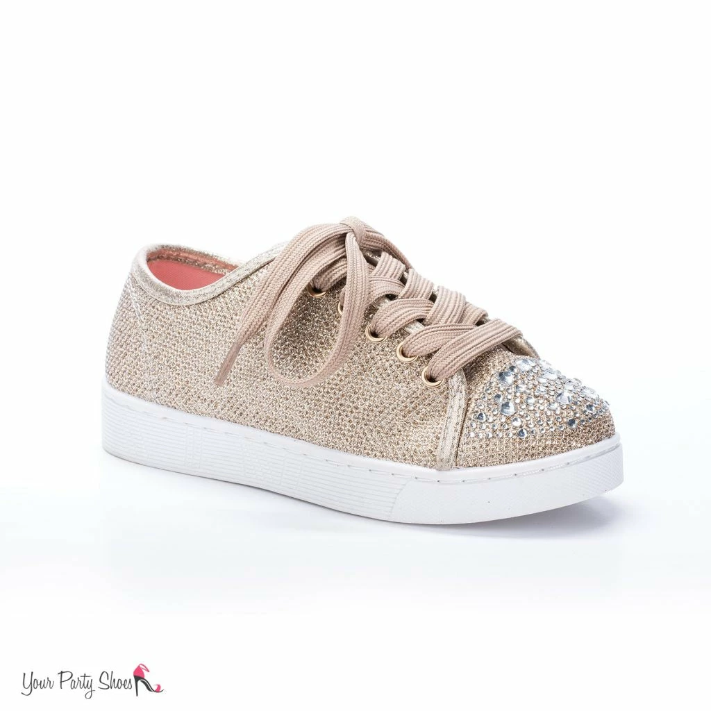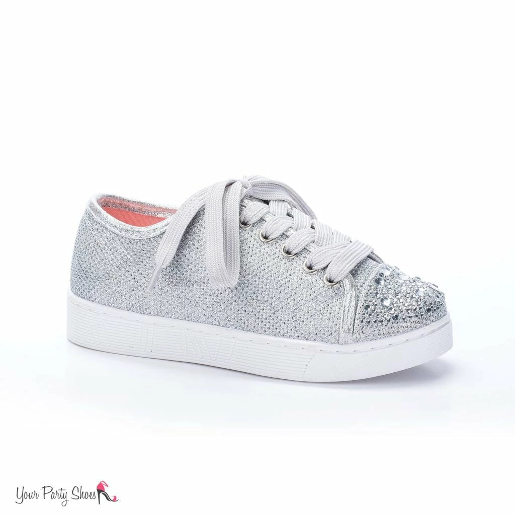Your Party Shoes Little Lexie Glitter Sneaker with Rhinestone & Crystal Embellishments. Perfect for Social or Formal Attire!